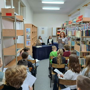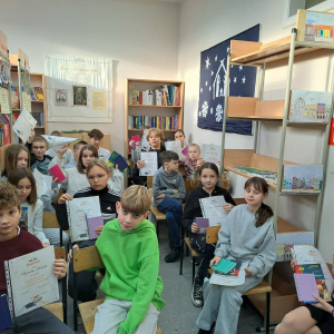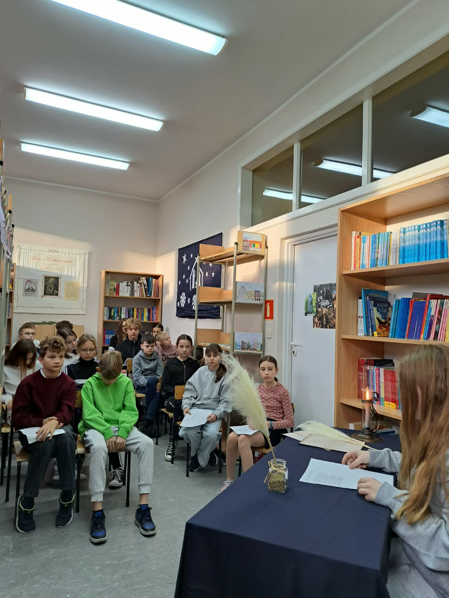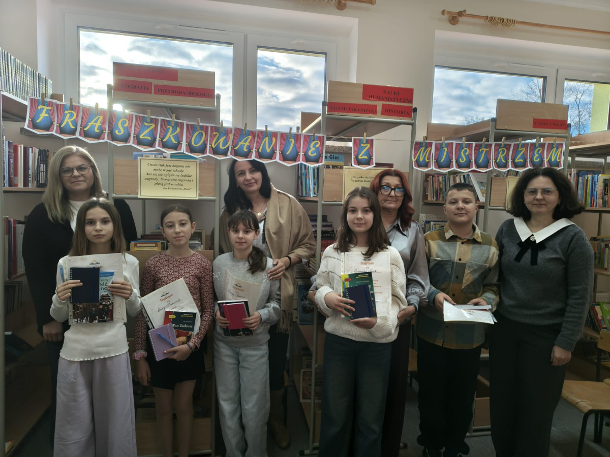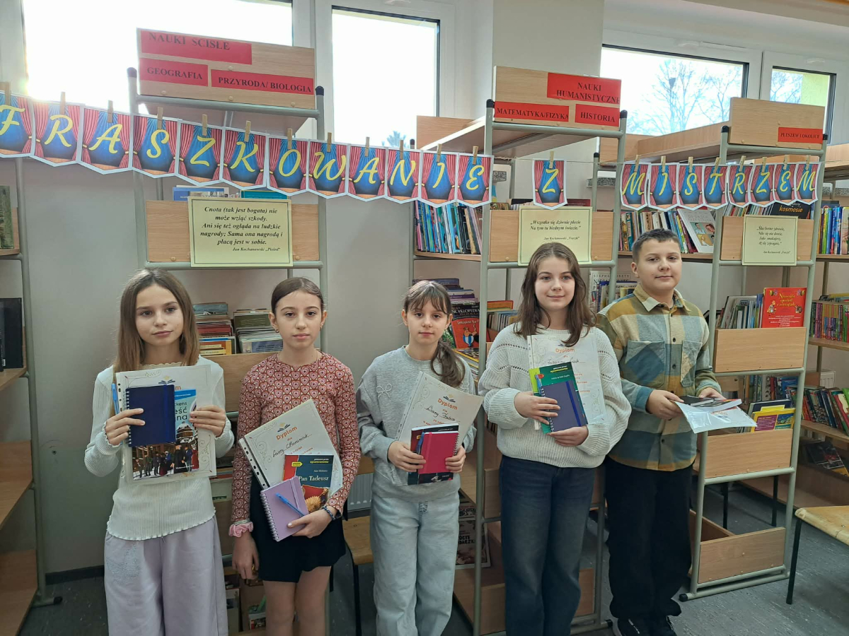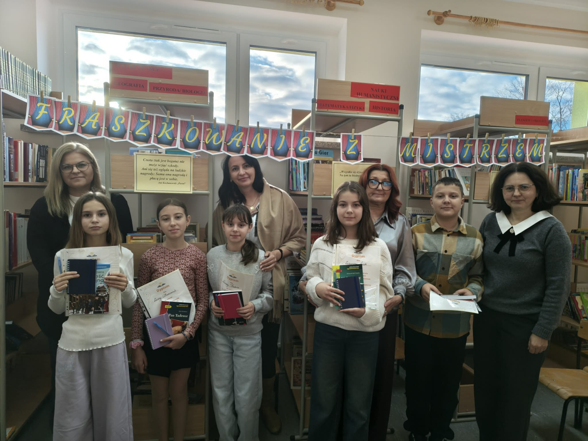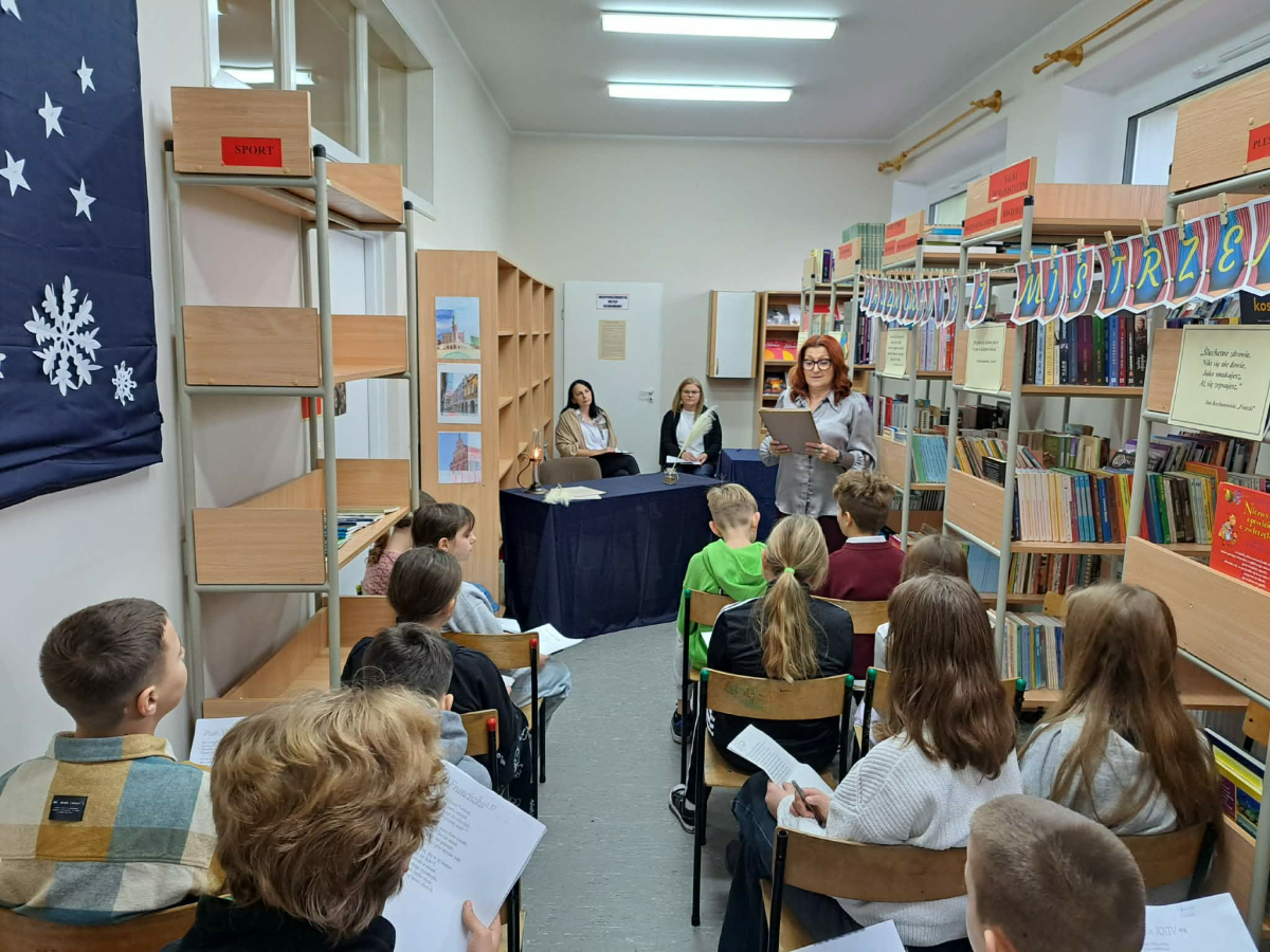 Fotoreportaż z przebiegu konkursu pięknego czytania, który odbył się w szkolnej bibilotece 10 grudnia 2025 roku o godzinie 8.25